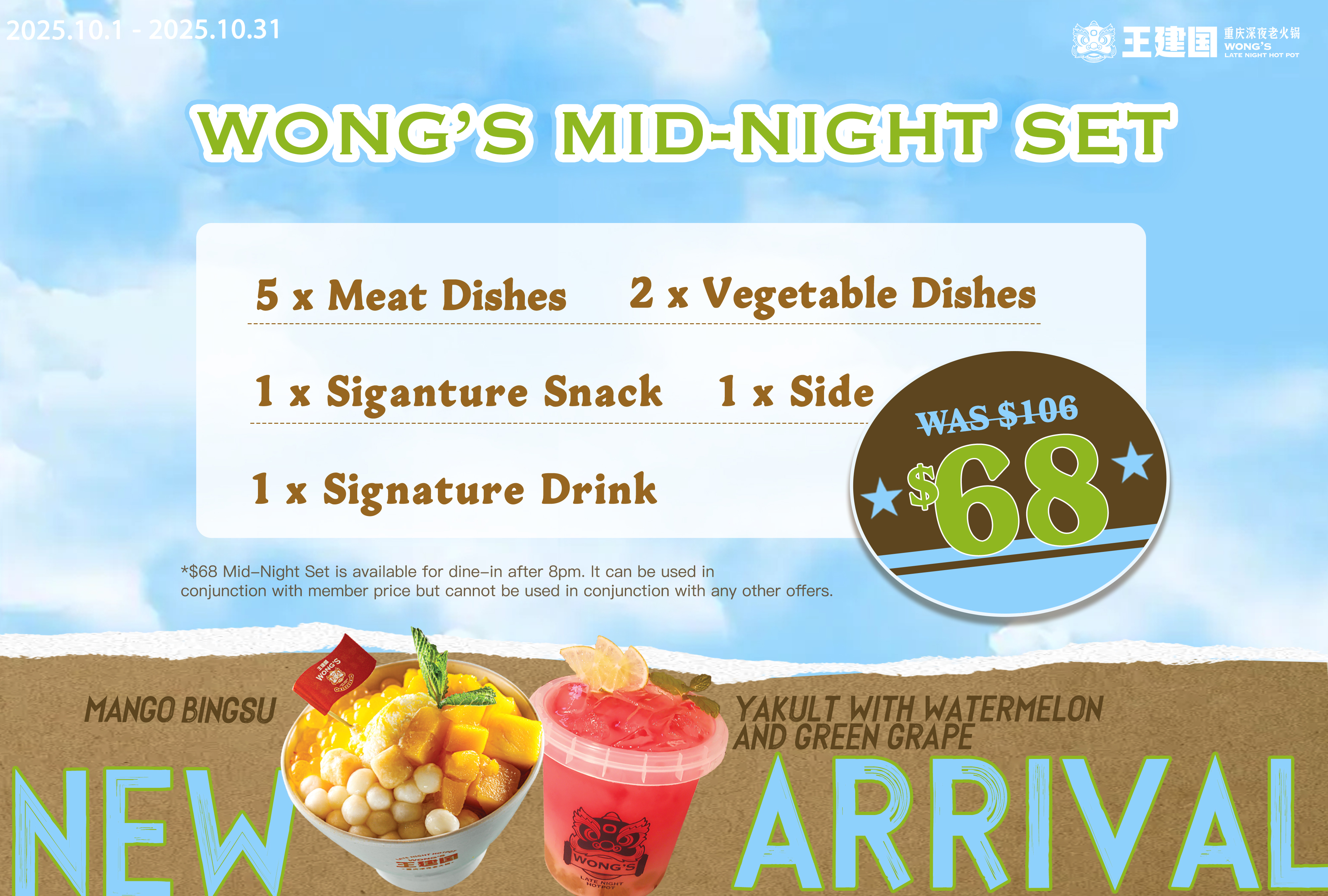 Indulge in a delicious, late-night hot pot experience with our $68 Midnight Set, available everyday after 8 PM at both Wong's CBD and Glen Waverley!