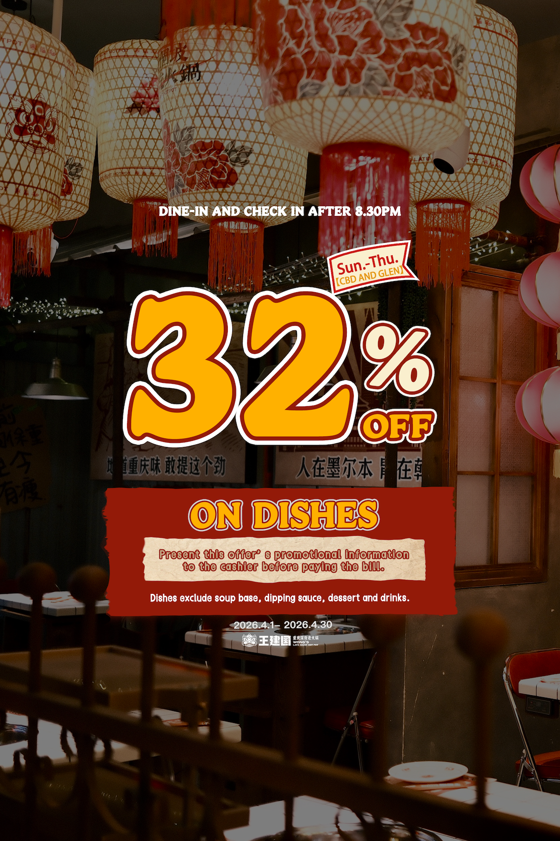 - This offer is available for dine-in from 1/4/2026 to 30/4/2026.